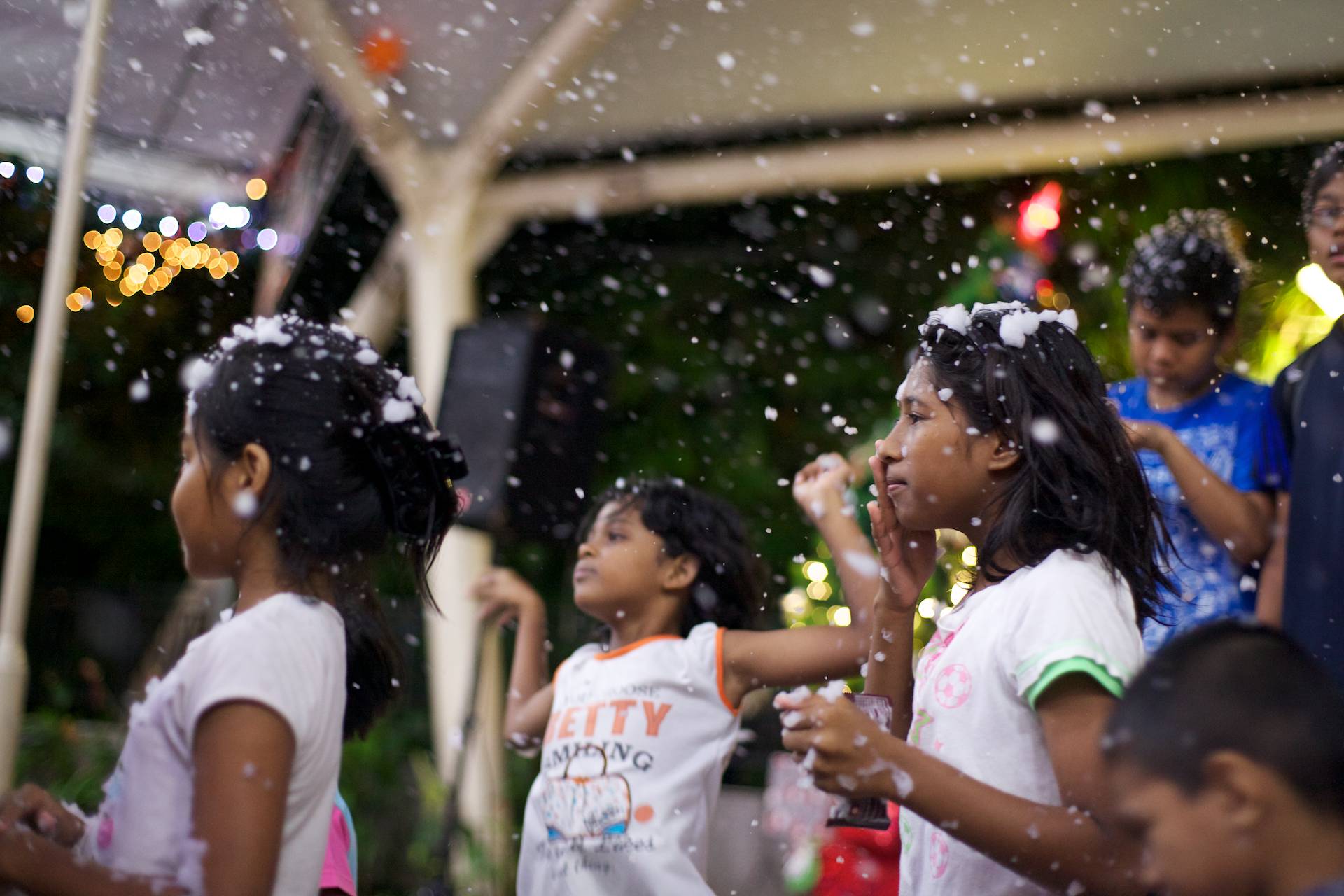 “Snowy Christmas 2011” at Holland Village, next to our apartment block in Singapore: free balloons and candy-floss, live music, American Christmas carols, a dignitary of the ruling party as honorary guest, and artificial snow (well, foam, actually).